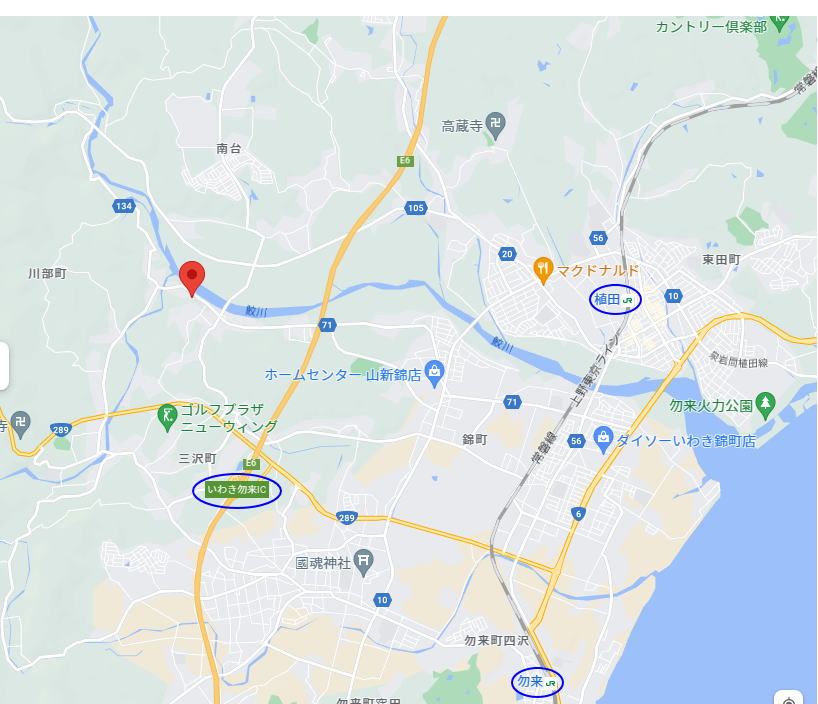 常磐線勿来駅より 車で7.2km、10分 常磐線植田駅より 車で6.1km、 9分